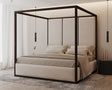 A modern four-poster with calm, hotel-luxe vibes. Chateau Onyx frames a triple-panel, deep-padded headboard inside a slim, square canopy—clean, architectural and instantly statement-making.